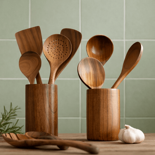 PurePrep™ Premium Teak Wood Utensils | 7-Piece Non-Toxic Set